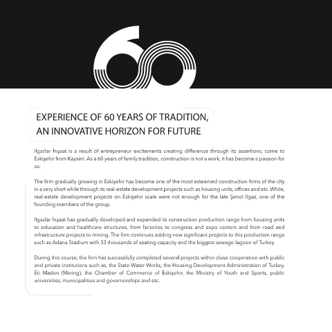 Ilgazlar İnşaat has gradually developed and expanded its construction production range from housing units approach shaped based knowlegde on the entire